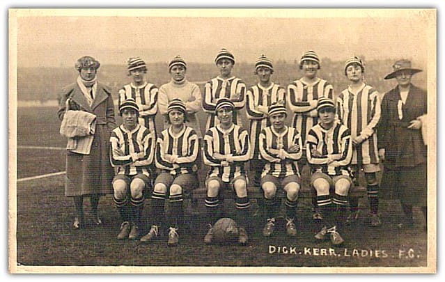 Warto pochylić się w szczególności nad zespołem Dick, Kerr Ladies. Założony został w 1917 roku w fabryce amunicji o bardzo zbliżonej nazwie – Dick, Kerr & Co. Mało komu przeszło przez myśl, że świeżo powstała drużyna będzie prekursorem idei emancypacji kobiet w zmaskulinizowanym uniwersum futbolu. Celem tej nowej inicjatywy było zbieranie pieniędzy na rzecz rannych żołnierzy.